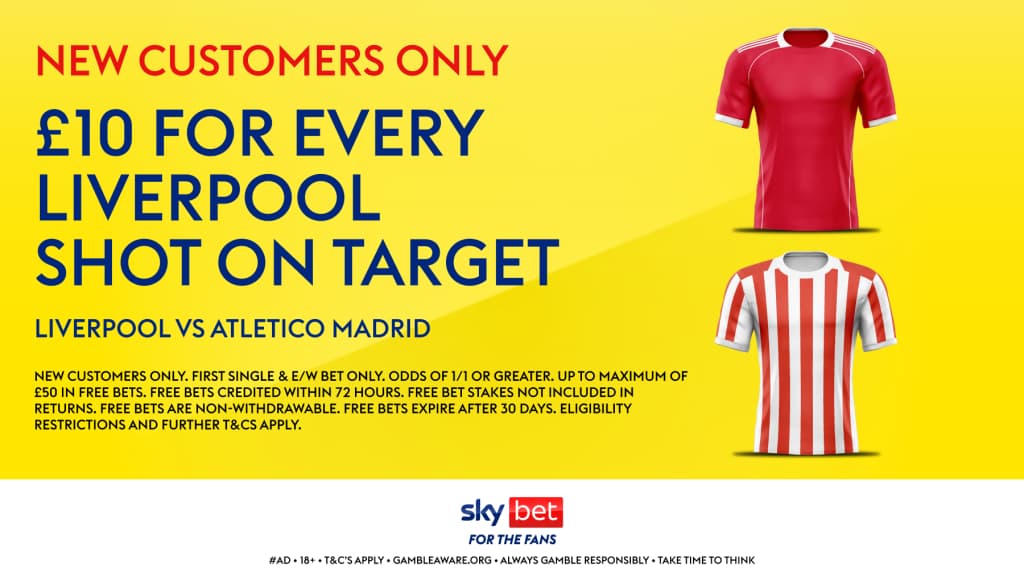 The good people at SkyBet have lined up this brilliant sign-up offer for new customers, focusing on the attacking exploits of Arne Slot's side. You can get a £10 free bet for every shot on target in Liverpool vs Atletico Madrid.