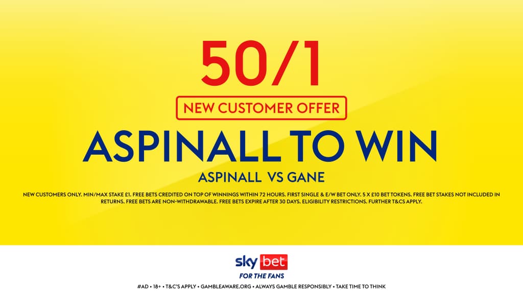 Sky Bet are offering odds of 50/1 for Tom Aspinall to complete a successful title defence, with £50 worth of free bets on offer. Alternatively, Cyril Gane has been boosted to 80/1 with this offer.