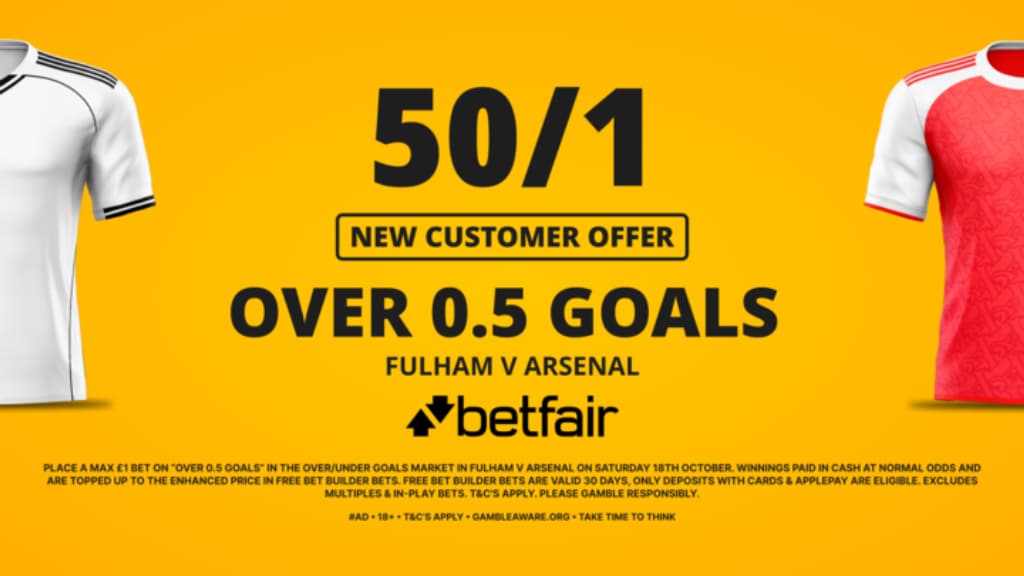 All you have to do is place a maximum £1 bet on “Over 0.5 Goals” in the Over/Under Goals market in Fulham v Arsenal on Saturday, 18th October.