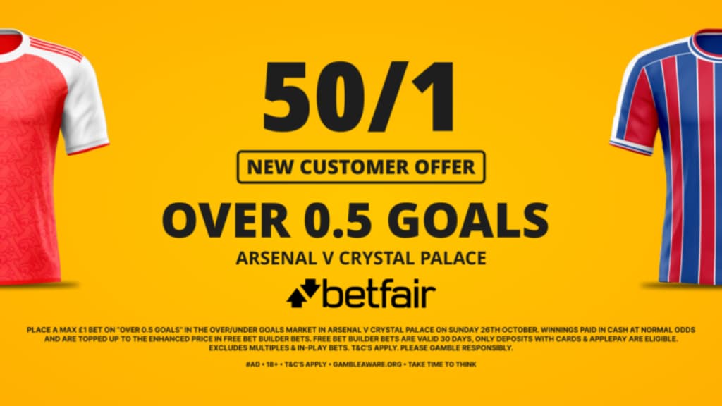 Betfair are offering 50/1 for Over 0.5 goals to be scored in this fixture, with the winnings paid out in builder bets should there be a single goal in this fixture. All you have to do is place a £1 bet on Over 0.5 goals when claiming this offer, and this offer only!