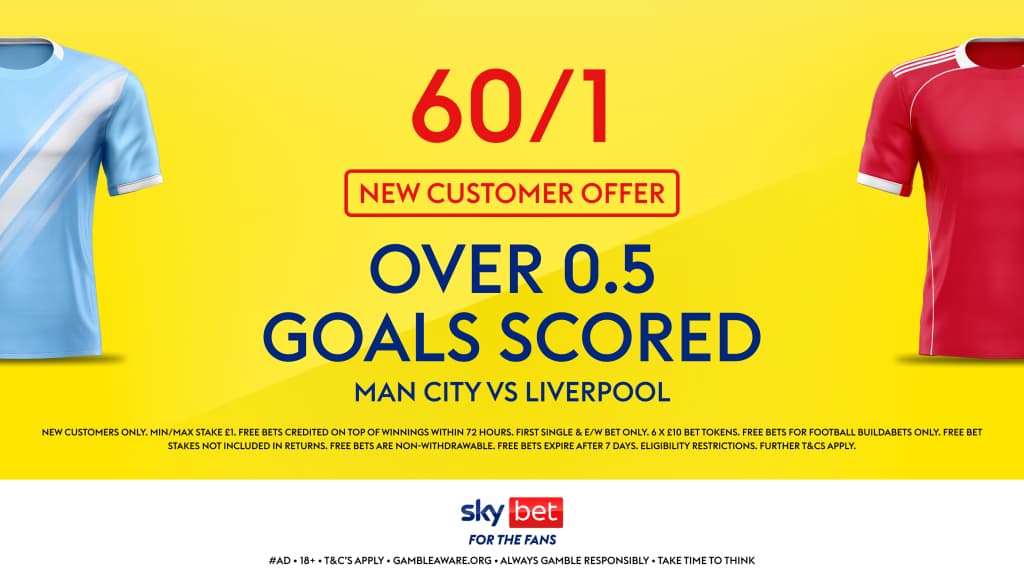 Sky Bet has all your betting needs covered, with this amazing offer for new customers. The bookmaker is offering boosted odds of 60/1 on Over 0.5 goals for the clash at the Etihad Stadium. All you need to do is deposit £5 through this enhanced price boost offer and place a max £1 bet on the Over 0.5 goals in this game.