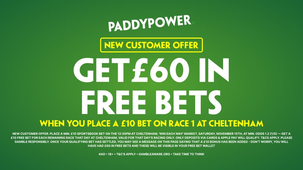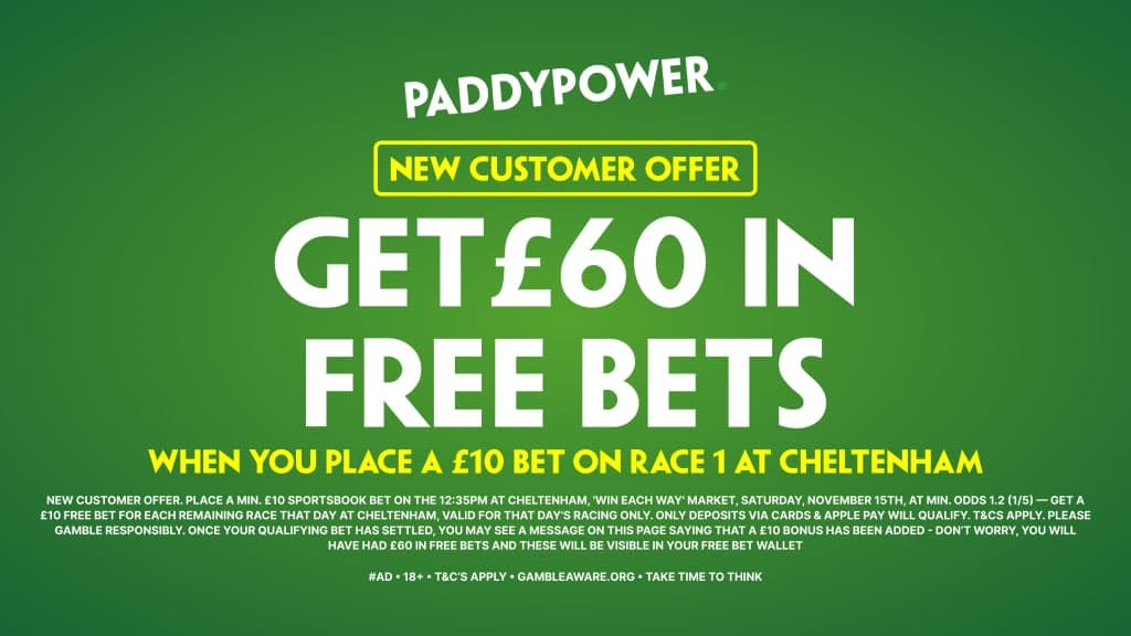 Speaking of Paddy Power, they have this excellent sign up offer for new customers. Paddy Power are offering £60 in free bets if you bet £10 on the "each way market" for the opening race at 12.35 pm on Saturday. By doing this, Paddy Power will issue you £60 worth of free bets, with 6x£10 free bet tokens to use on each of the remaining six races for Saturday's racing extravaganza.