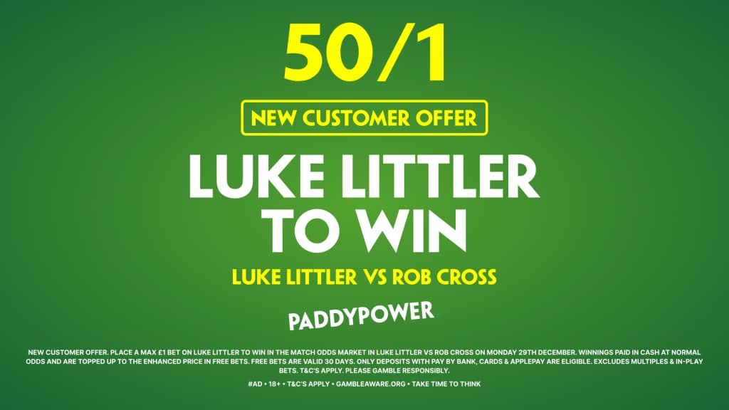 The bookmaker is offering enhanced odds with this exclusive sign-up offer of 50/1 for Luke Littler to beat Rob Cross, with this promotional offer only available to new customers. All you have to do is sign up and place a £1 bet on Littler to beat Rob Cross, with £50 worth of bet builders on offer if your bet is successful.