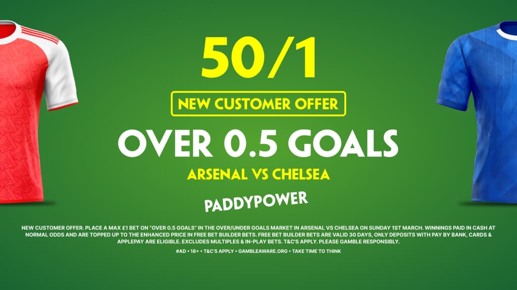 Paddy Power are offering odds of 50/1 for over 0.5 total goals in this London derby for any new customers who make an account and use the special promo code.