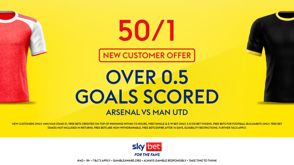 Sky Bet are offering new customers enhanced odds of 50/1 for Over 0.5 goals in this fixture, with £50 worth of free bets available. Even if your bet is unsuccessful, you will be given £10 worth of free bets.