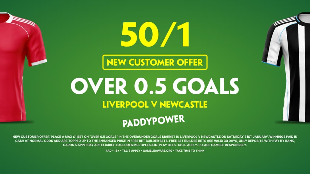 Paddy Power have this tremendous offer for Saturday evening's Premier League fixture between Liverpool vs Newcastle United, which could see you land £50 worth of free bets!