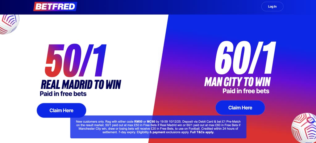 Betfred is offering new sign-ups enhanced odds of 50/1 for Real Madrid to beat Manchester City or 60/1 for Manchester City to secure a win against Los Blancos.