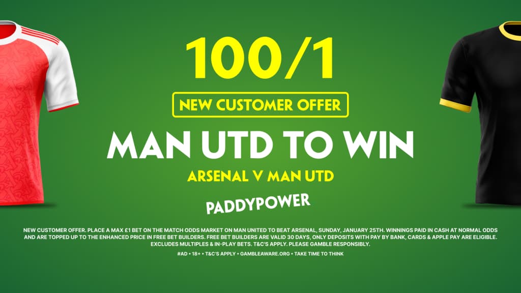 Paddy Power are all in with their tremendous offer for new customers, which provides an opportunity to win £100 in free bets if you choose Manchester United to beat Arsenal this weekend at the Emirates.