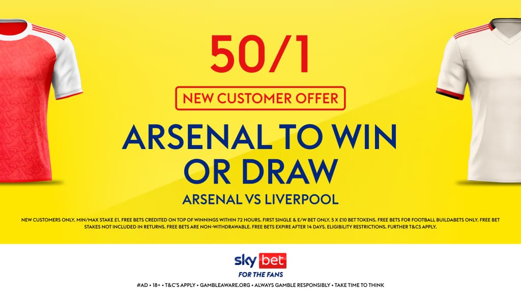 Sky Bet have got involved in this massive fixture, with this excellent sign up offer of 50/1 for Arsenal to win or either draw this fixture. All you have to do is claim this offer below and place a £1 bet on Double Chance Arsenal/Draw to be within a chance of claiming £50 worth of free bets!
