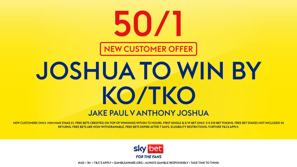 Alternatively, as part of this offer, you can place the same initial stake on 70/1 for Joshua to beat Jake Paul on points or decision!