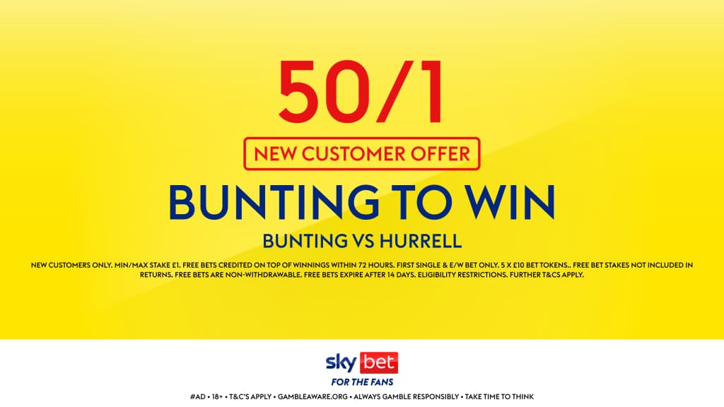 Sky Bet are going 'Mental' along with Bunting with this excellent sign up offer for new customers. Sky Bet are offering odds of 50/1 for Stephen Bunting to beat James Hurrell in their round three clash after Christmas. All you have to is follow the sign up steps down below to claim this exclusive offer!