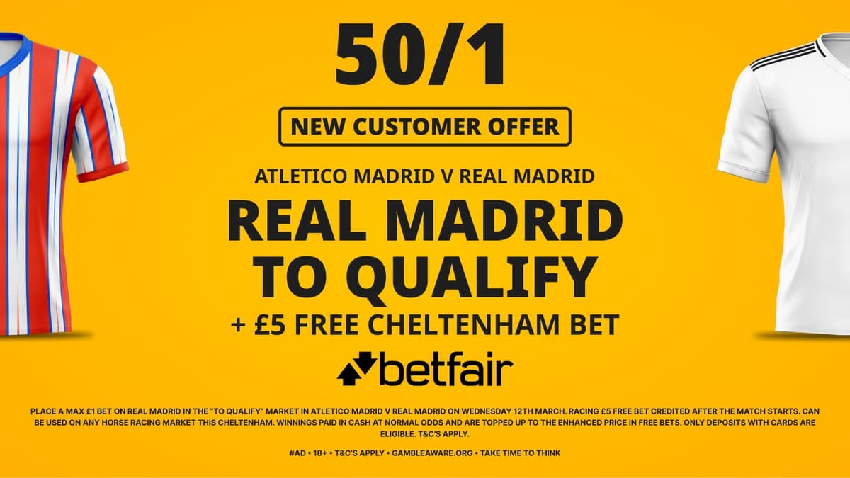Betfair have massively boosted their odds for this game as New Customers can take advantage of this enhanced odds offer: Real Madrid to qualify at 50/1 + £5 Free Cheltenham Bet.