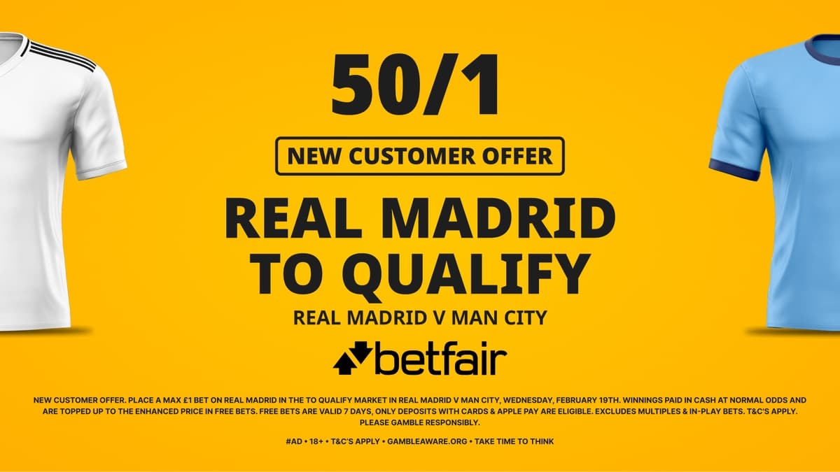 Betfair have raised their stakes for new customers with this incredible enhanced odds offer. New Customers can take advantage of this exclusive deal to earn massively boosted odds: Real Madrid to qualify 50/1
