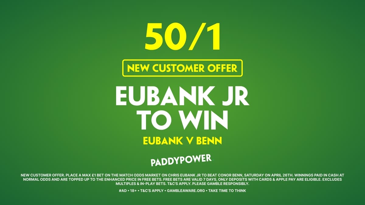 Paddy Power have massively increased the drama for this fight with an fantastic dual enhanced odds offer. New customers can take advantage of this exclusive deal to earn massively boosted odds: Chris Eubank JR to win 50/1 or Connor Benn to win 80/1.