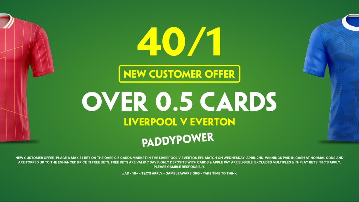 Paddy Power have raised the stakes for this match with an irresistible enhanced odds offer. New customers can seize this exclusive deal to earn massively boosted odds: Over 0.5 cards in Liverpool vs Everton 40/1.
