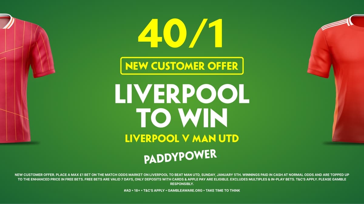 Liverpool vs Man Utd - Paddy Power Dual offer – Liverpool to win at 40/1 or Man Utd to win at 100/1
