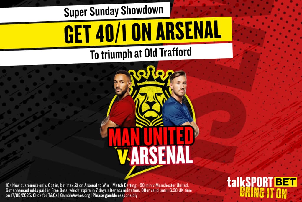 Well-known bookmaker talkSPORT BET have a massive offer for this one: 40/1 on Arsenal to win, boosted from regular odds of just evens!